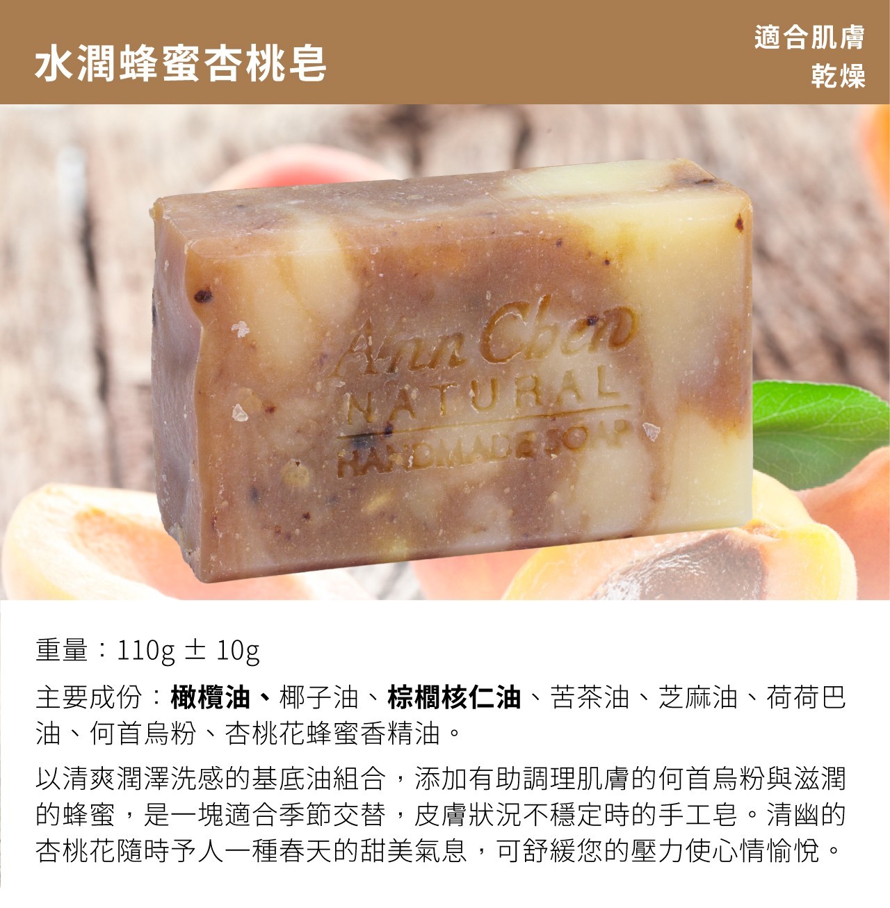 當季促銷 換季滋養手工皂4入組:桂花奶油皂、水潤蜂蜜杏桃皂、呵護酪梨皂、玫瑰燕麥皂。原價1460,特價999。會員加送潤膚奶油60g。